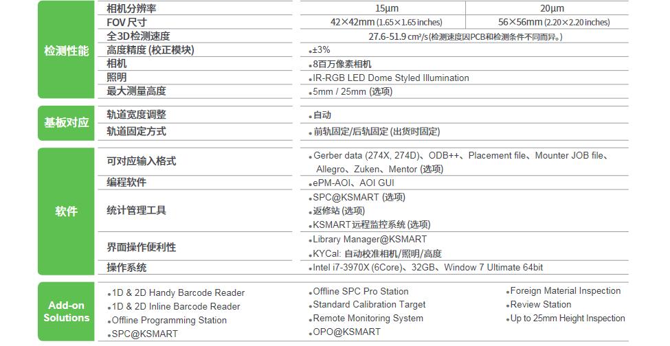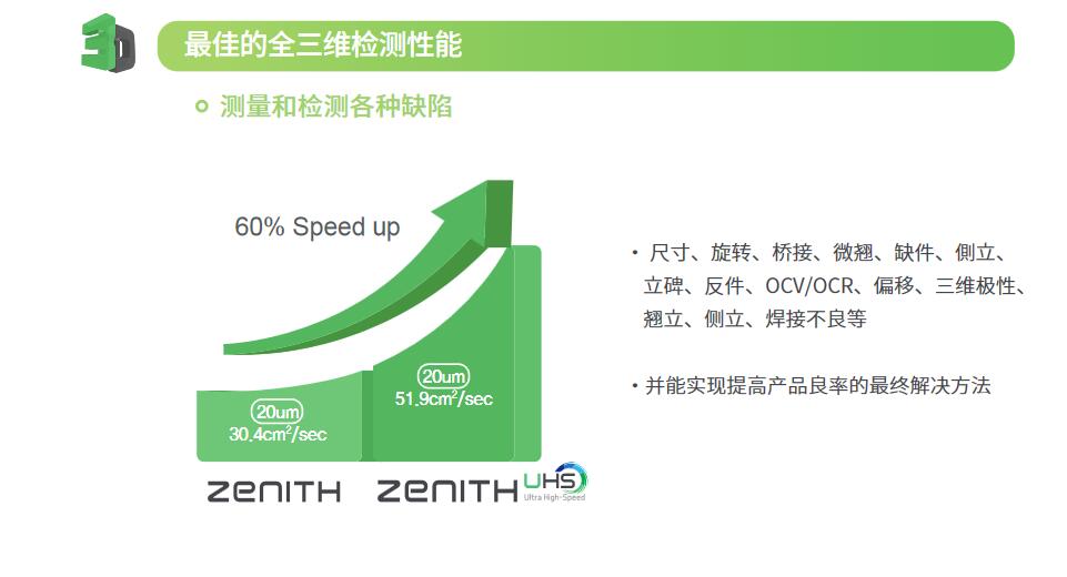KOH YOUNG TECHNOLOGY Zenith UHS 高速全3D AOI,帶來 SMT 工藝管理的革命 行業(yè)領(lǐng)先的全三維測量檢測設(shè)備技術(shù)解決方案 - 業(yè)界唯一既符合 IPC-610 標(biāo)準(zhǔn)又具備直觀編程的檢測標(biāo)準(zhǔn)設(shè)置 - 通過基于測量的數(shù)據(jù)執(zhí)行缺陷診斷,并消除可能出現(xiàn)錯誤的原因 - 完美的三維焊點(diǎn)檢測 基于全三維數(shù)據(jù)的工藝優(yōu)化解決方案:實現(xiàn)工業(yè) 4.0 /智能工廠 適用于各種生產(chǎn)環(huán)境的最佳規(guī)格典范
