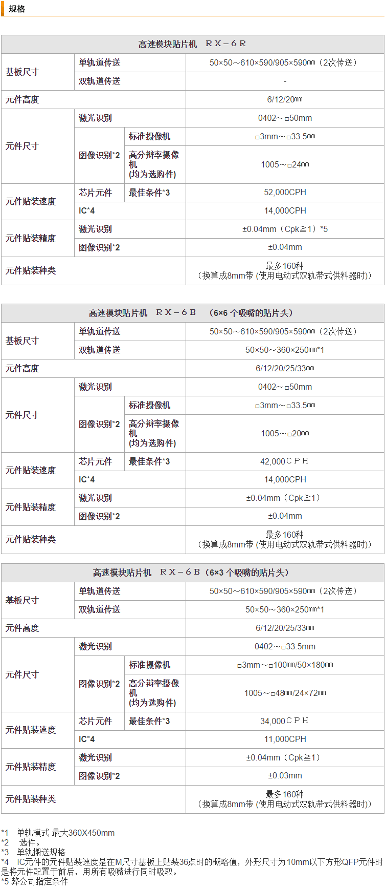RX-6R是投入在RX-6系列中的新機型,由于改善了吸嘴上下移動的軸、增加了強度、優(yōu)化了貼裝頭的高度等,使貼裝速度與以往機相比大幅度地提高了24%,達到52,000CPH(最佳條件)。