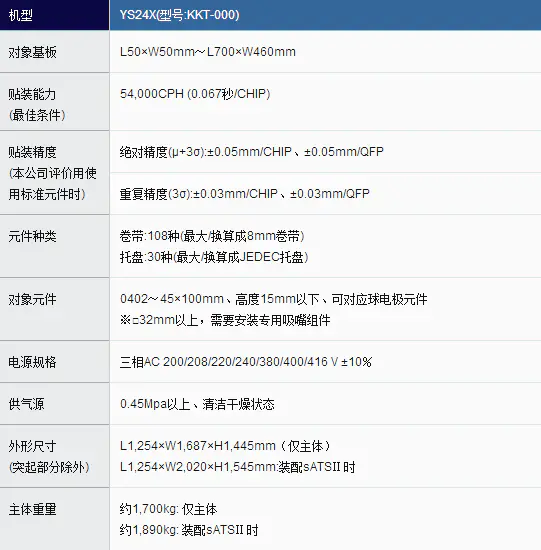 YAMAHA貼片機(jī)-YS24X型設(shè)備參數(shù):